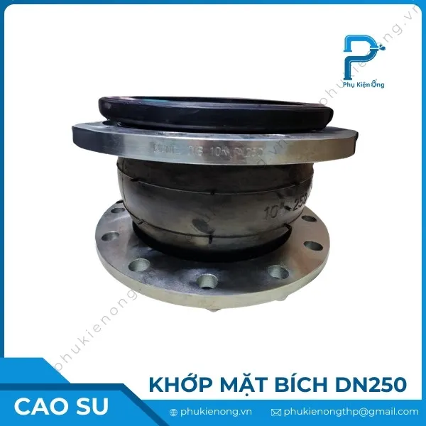 - Kích thước DN250 nên phù hợp lắp đặt khớp nối mềm cao su DN250 cho các hệ thống ống phi 273mm.