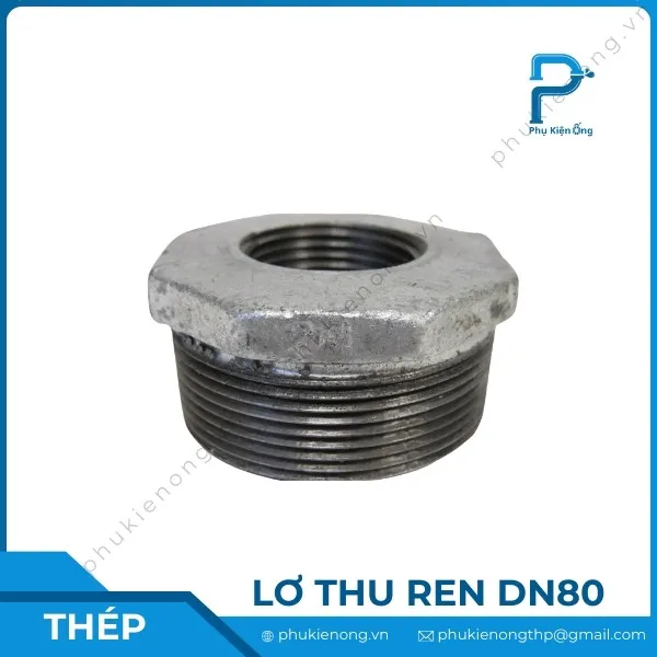 Lơ thu ren mạ kẽm DN80 hay lơ nối thẳng ren phi 90 là phụ kiện ống nước nối ren thẳng. Chúng được sử dụng để nối các đường ống ren thẳng hàng, khác kích thước. Với kích thước DN80, tương đương khoảng 3 inch, sản phẩm này giúp kết nối đoạn ống có kích thước phi 90 với ống có kích thước nhỏ hơn như phi 76, phi 60, phi 49,…
